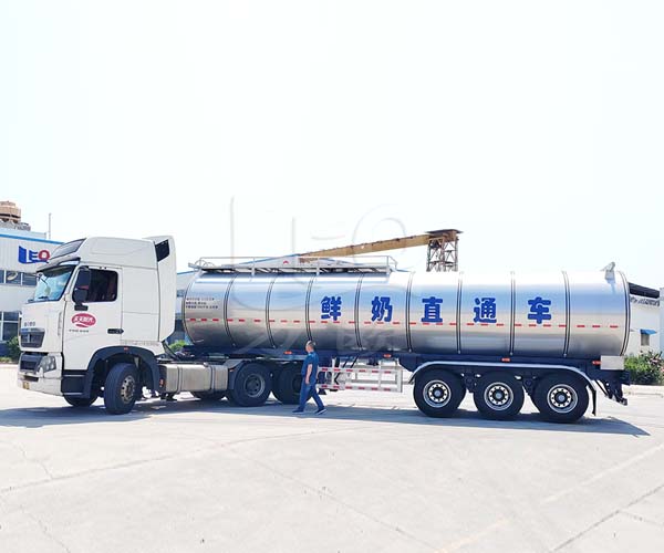 力歐33.3立方半掛式牛奶運輸車發(fā)車